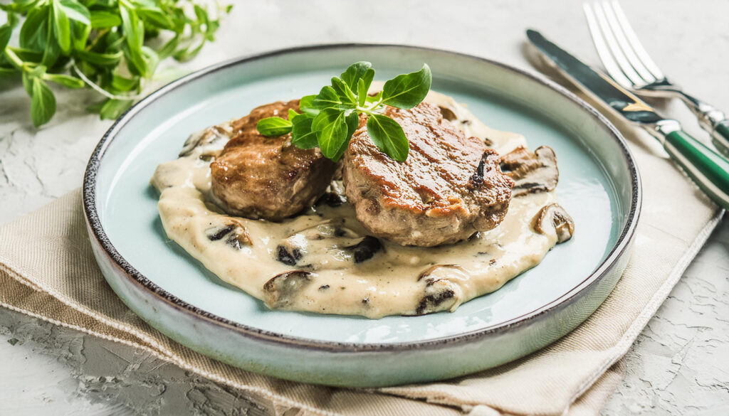 Côte de veau à la crème et aux champignons